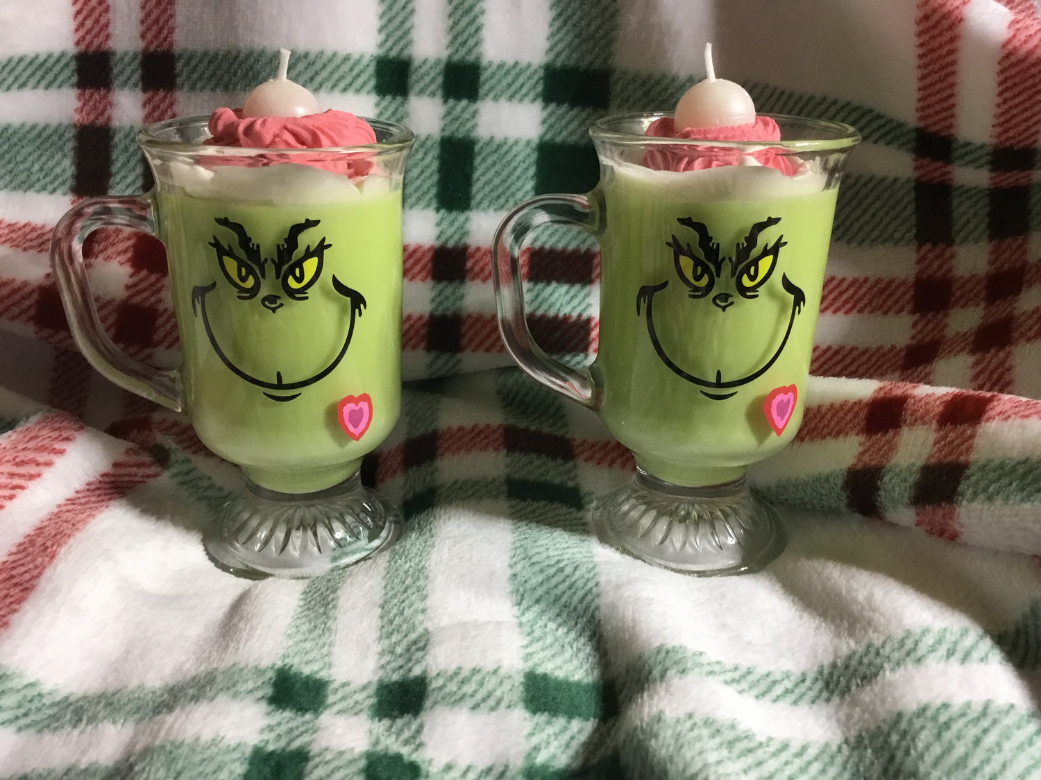 This is a fun candle with its own mug, Grinch face and Apple Cinnamon scented candle. The fragrance that is being used for this candle is from Lone Star candle company.