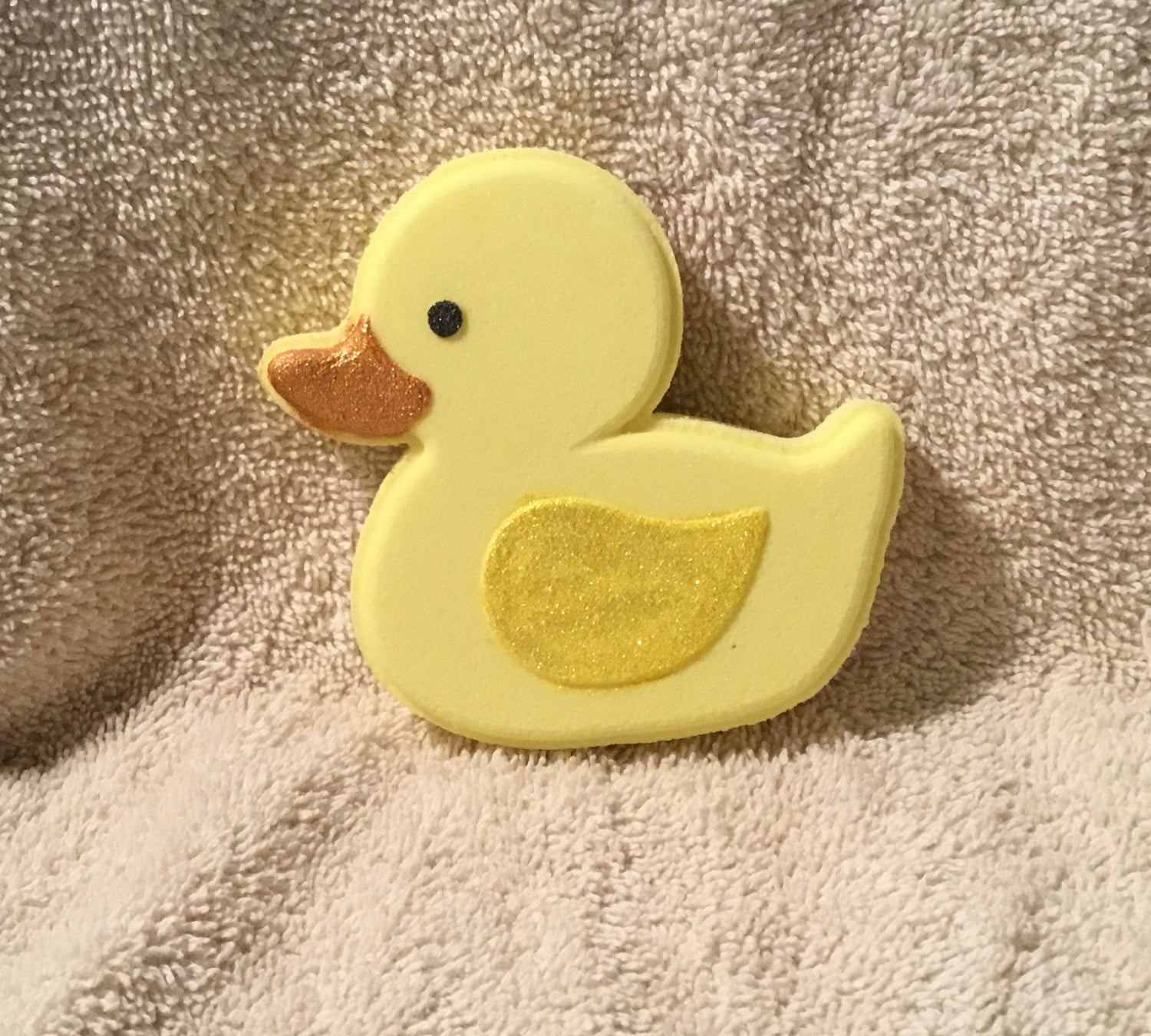 This little duck is done in the fragrance oil Sea Salt and Lily by BrambleBerry. Its a great scent with notes of Coconut Water, Pink Himalayan Salt, Key Lime, Lotus, Rose, and Sage Leaf as well as essential oils like Lemon and Grapefruit. Then bottom notes of Seashell, Orange Blossom, Magnolia and Jasmine. Each bath bomb weighs 4.5 to 5 ounces.